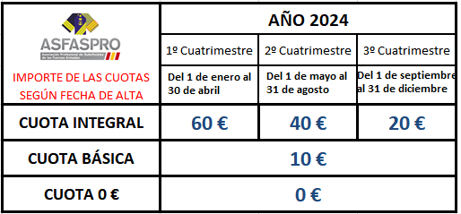 El importe a pagar de la cuota integral disminuirá si el alta se produce en el segundo o tercer cuatrimestre, según la siguiente tabla:
