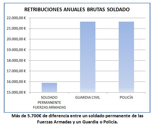 Más allá de la aparente preocupación de toda la clase política, y de la sociedad civil, por el bienestar y el futuro profesional de los militares; y de los manidos reproches por las muertes o accidentes producidos en acto de servicio o en zona de operaciones, está la cruda realidad que vivimos los únicos empleados públicos que tenemos la obligación de ofrecer la vida en el cumplimiento del deber y disponibilidad permanente para el servicio. Lamentablemente, este sacrificio no se ve valorado ni recompensado de forma adecuada sino que el militar está en el furgón de cola en un aspecto tan objetivo y constatable como es el de las retribuciones.