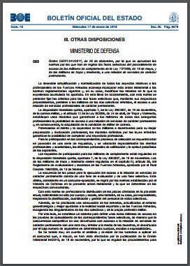 ORDEN DEF/1341/2017, DE 20 DE DICIEMBRE, POR LA QUE SE APRUEBAN LAS NORMAS POR LAS QUE HAN DE REGIRSE LAS FASES SELECTIVAS DEL PROCEDIMIENTO DE ACCESO DE LOS MILITARES DE COMPLEMENTO DE LA LEY 17/1999, DE 18 DE MAYO, Y DE LOS MILITARES DE TROPA Y MARINERÍA, A UNA RELACIÓN DE SERVICIOS DE CARÁCTER PERMANENTE.